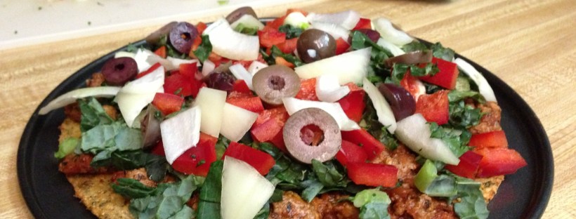 Process cauliflower in a food processor until the it resembles a rice-like texture and is almost mashed. Combine the cauliflower, egg and seasonings in a medium size mixing bowl until a dough is formed. Add coconut flour to the dough as needed – you don’t want the dough to be too wet. I usually use approximately 1/4 cup of coconut flour to soak up any excess moisture. Spread mixture on small pizza pan (I actually used the removable bottom piece of a 9’’cake pan, and it fit perfect) Bake at 350 degrees (177 C) for approximately 40 minutes or until the crust is a beautiful golden brown.