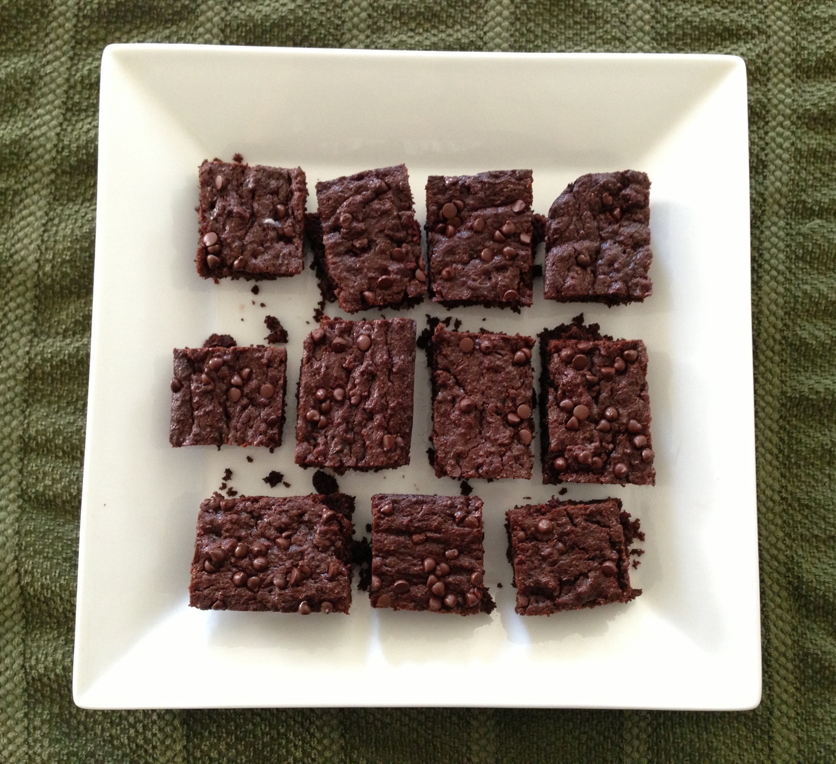 Preheat your oven to 350. Grease an 8×11 glass baking dish with a teaspoon or so of coconut oil and pour in the batter evenly. Top the batter with the remaining chocolate chips and bake for approximately 15 minutes. Insert a toothpick in the center of the brownies to check for doneness. If you toothpick comes out clean, the brownies are ready! Give these bad boys about 20 minutes to cool before cutting into them (if you can wait this long. Sometimes, I don’t make it).