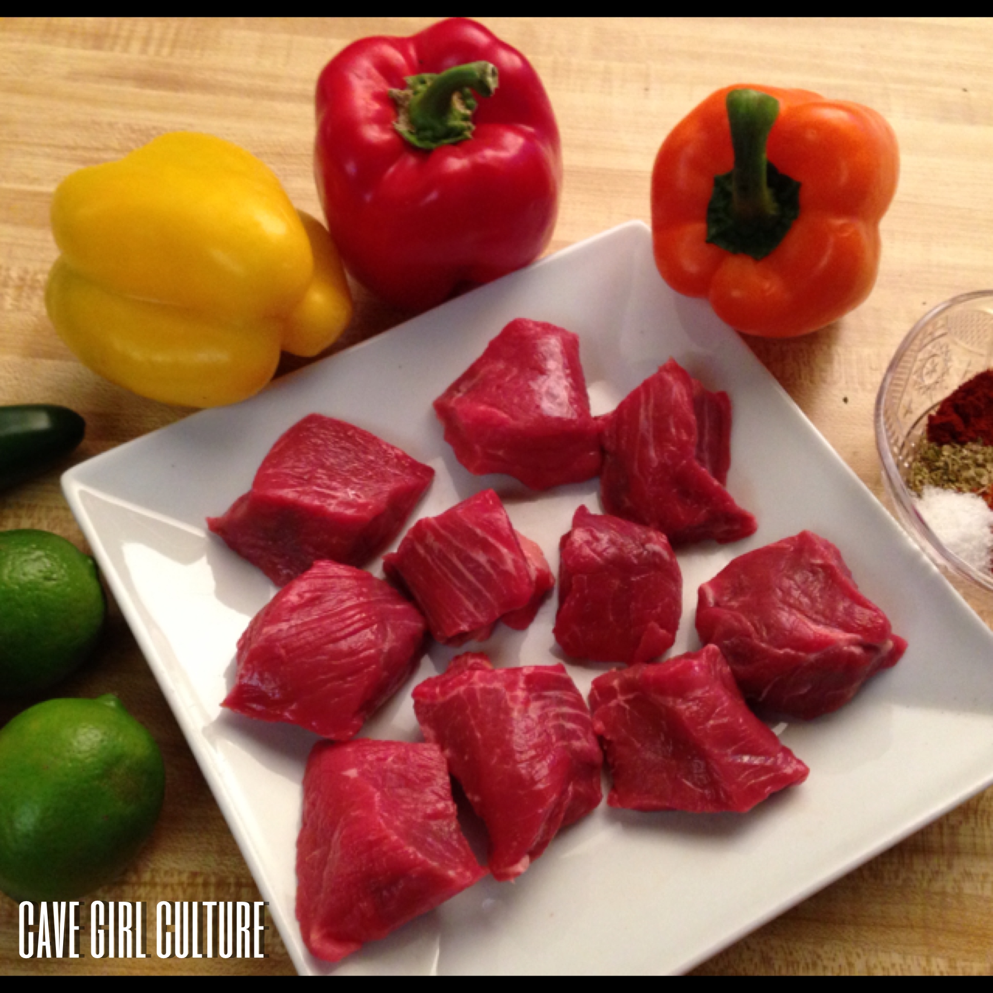 • 1 lb. of grass-fed beef. (I used what I had on hand, which was cube steak, however flank steak is the best)