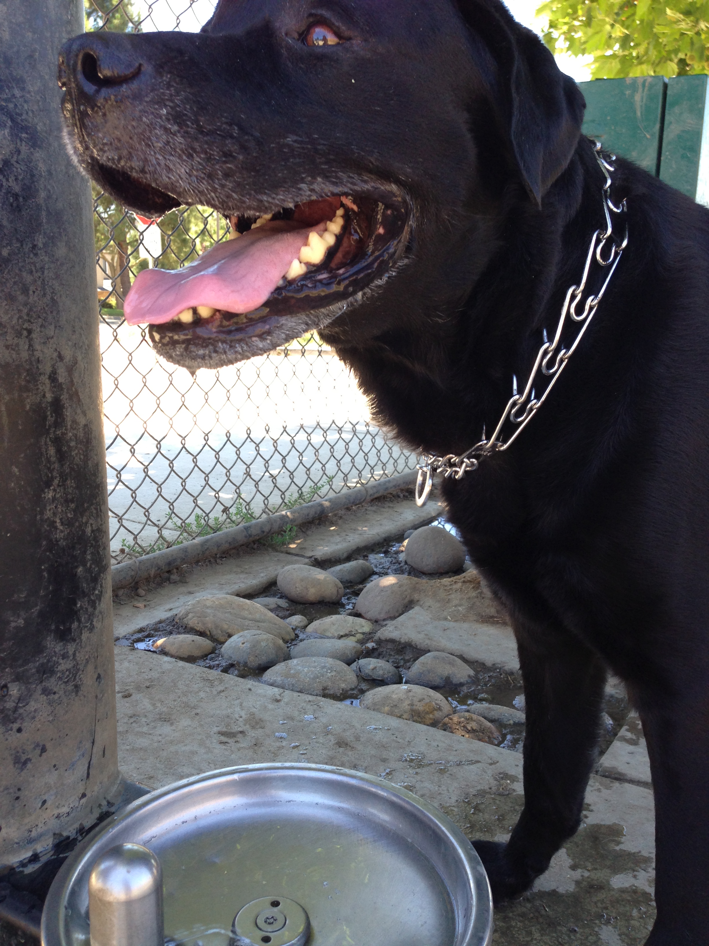 After tiring the pooch out at the dog park, we took him back home to cool off in an air-conditioned house. The dog has got it made.