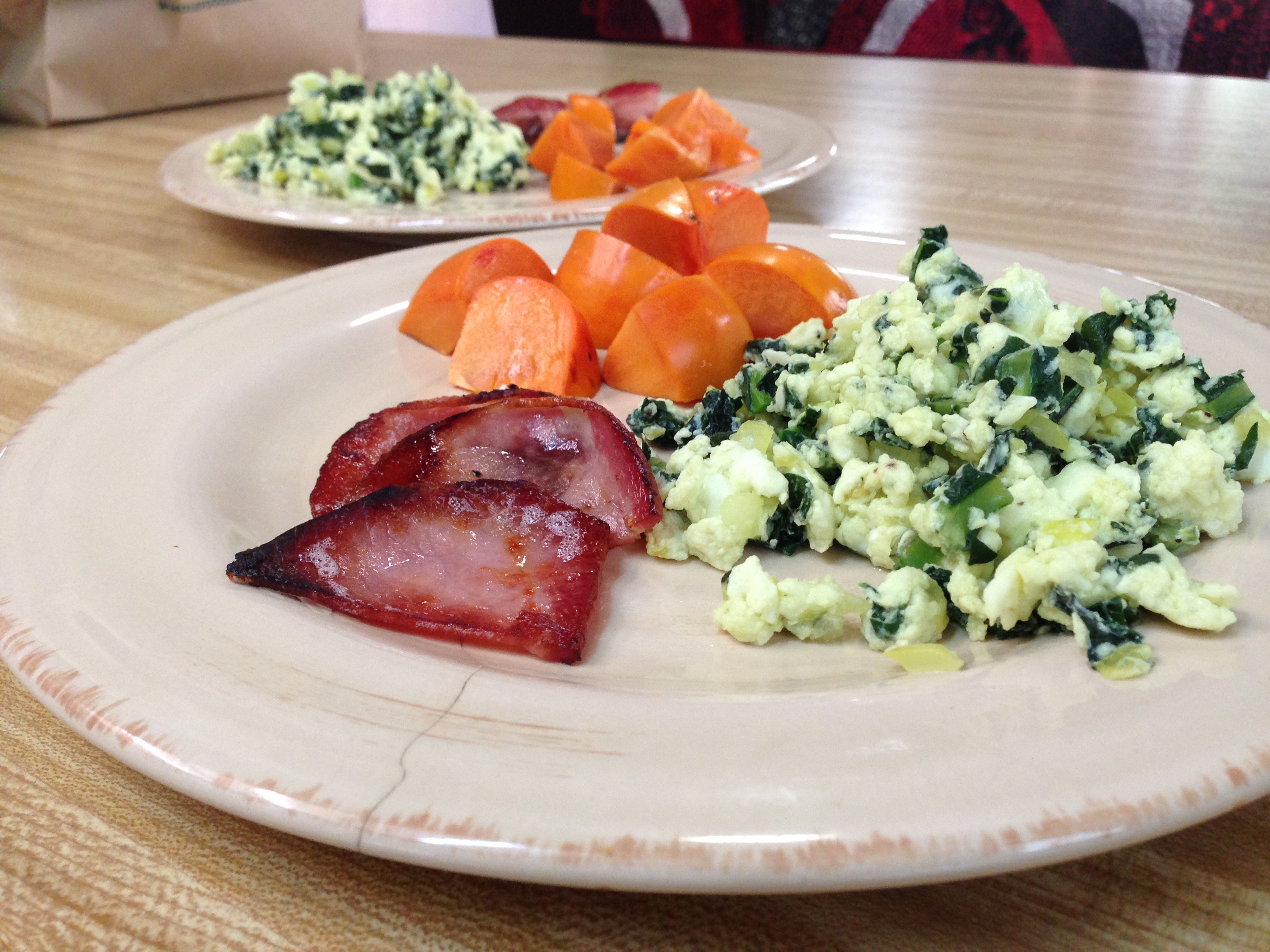 Let’s get to the good stuff…FOOD. I made Cave Man and I a terrific egg white scramble this weekend, before a walk to the local farmers market. It’s quick, easy, and delicious. Enjoy!