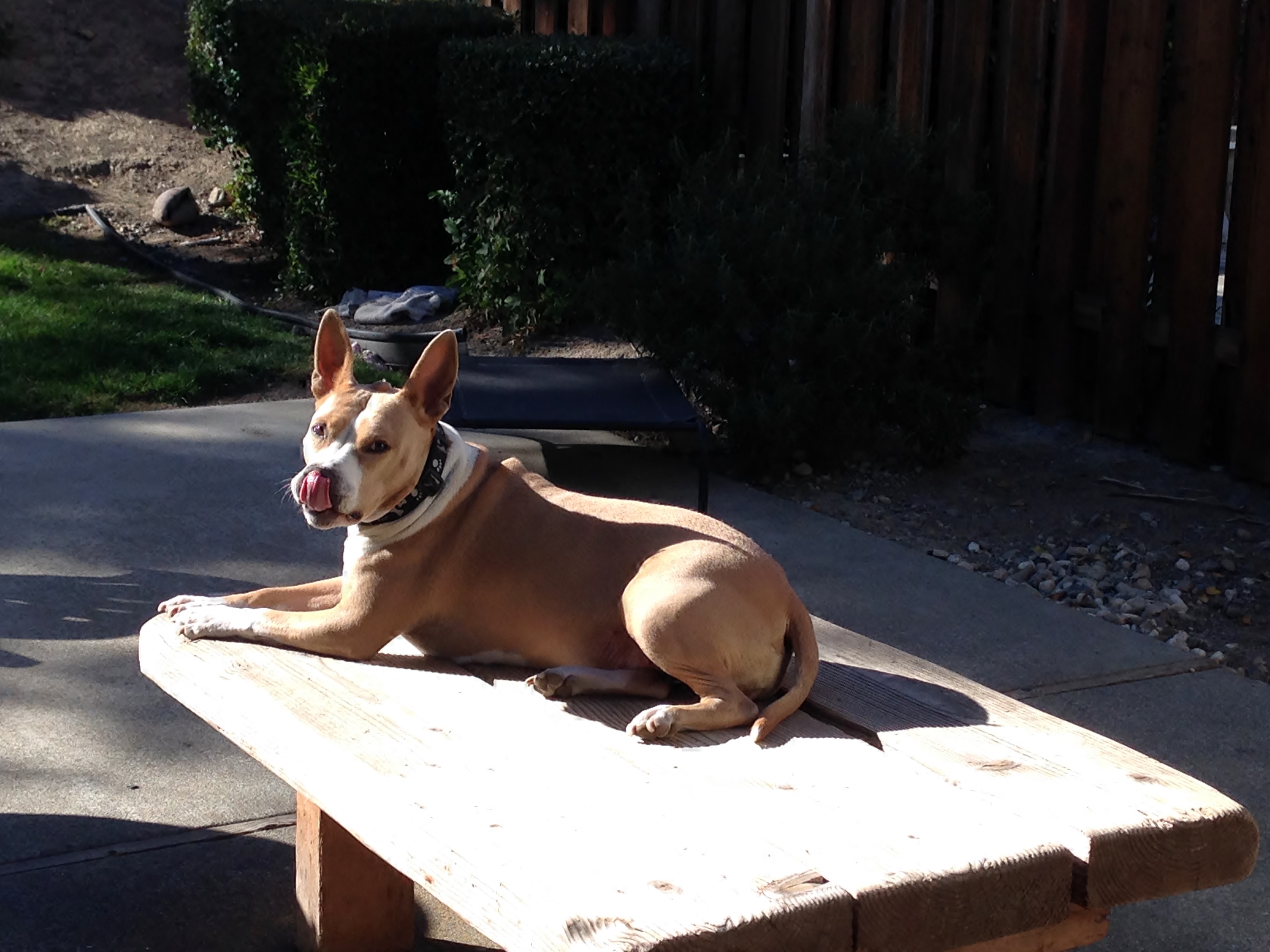 Mark Sisson wrote a great article on the benefits of sunbathing this week. All I read was “Sun is good for your bod. Sun is even better for your bod when you’re drinking red wine and eating dark chocolate, simultaneously. The end” Just kidding. Mark describes what a day of sunbathing would look like, when to step outside, and how to maximize the benefits of sunbathing, like introducing certain foods for UV protection. It’s cleverly written, and chock full of science . Check it out here. P.S. My roomie’s dog knows all about sunshine. We typically find her laying on the outside table in the mornings, like this –