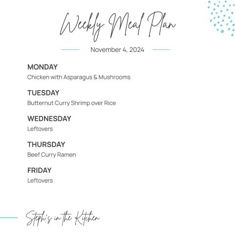 Happy Monday! Here is the weekly meal plan, with links to the recipes. Enjoy!