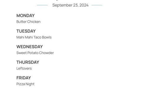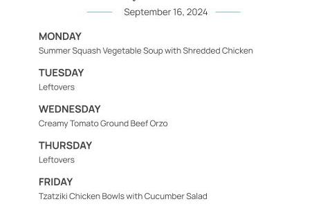 Happy Monday! Our oldest child is back in school, and our schedule is becoming a little more strict again after the summer break. So I'm back, sharing our family's weekly meal plan, with links to the recipes, and any modifications we made. This week, we focused on easy meals that had plenty of leftovers. Enjoy! … Continue reading Weekly Meal Plan 9.9.24